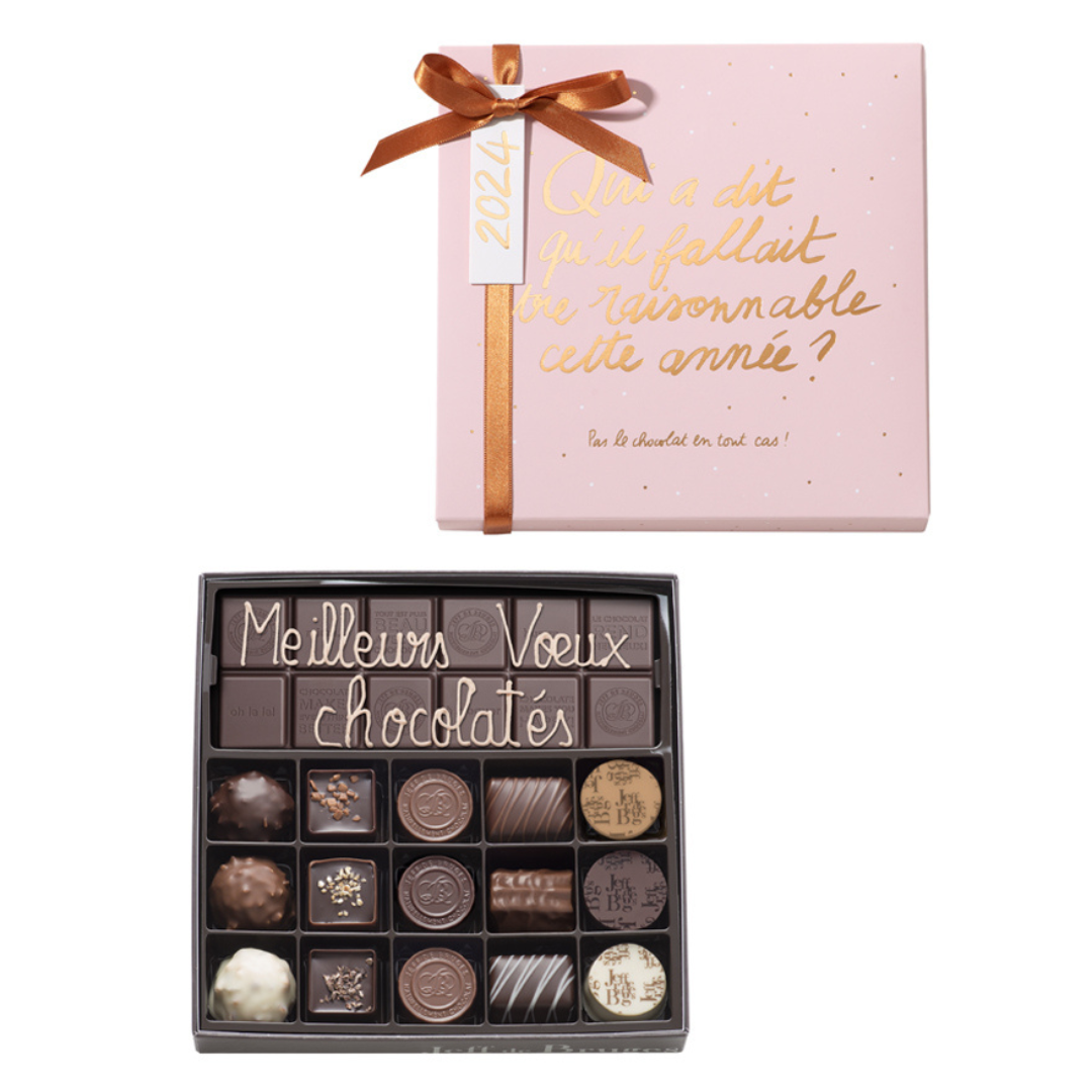 Et puis zut, comment résister à la tentation du chocolat ? Pour la soirée du Nouvel an 2026, offrez un cadeau original et gourmand en personnalisant vos vœux sur une tablette de chocolat.